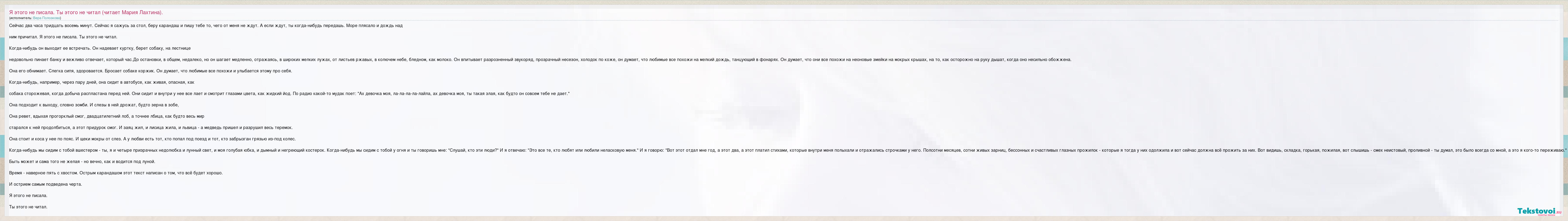 Я этого не писала. Ты этого не читал (читает Мария Лахтина).