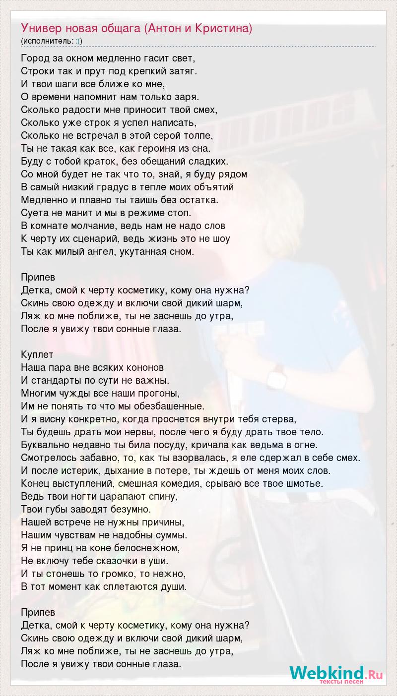 А как ты думаешь, о чем песня "Универ новая общага (Антон и Кристина)" ?