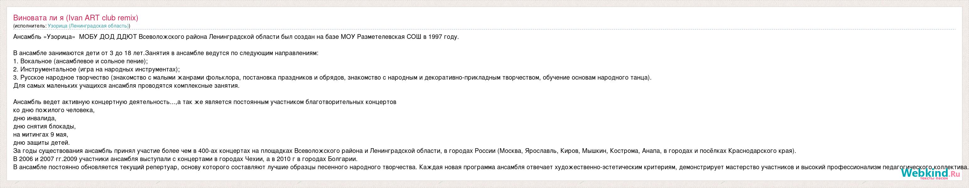 А как ты думаешь, о чем песня "Виновата ли я (Ivan ART club remix)" ?