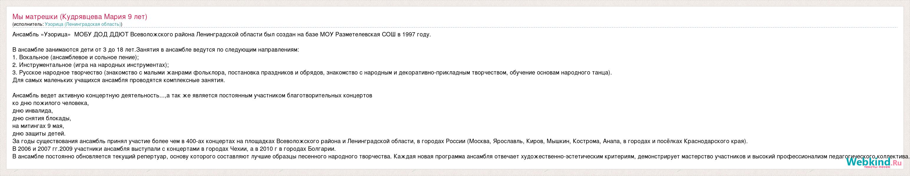 А как ты думаешь, о чем песня "Мы матрешки (Кудрявцева Мария 9 лет)" ?