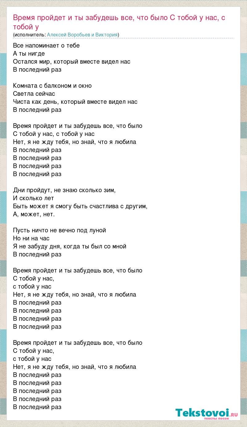 Главная→Исполнители→Алексей Воробьев и Виктория→Время пройдет и ты забудешь все, что было С тобой у нас, с тобой у