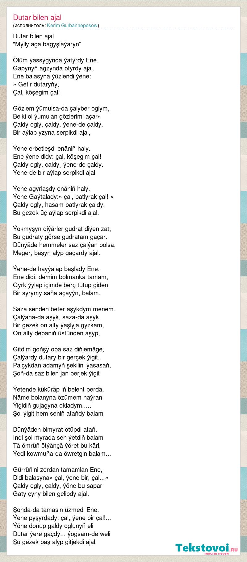А как ты думаешь, о чем песня "Dutar bilen ajal" ?