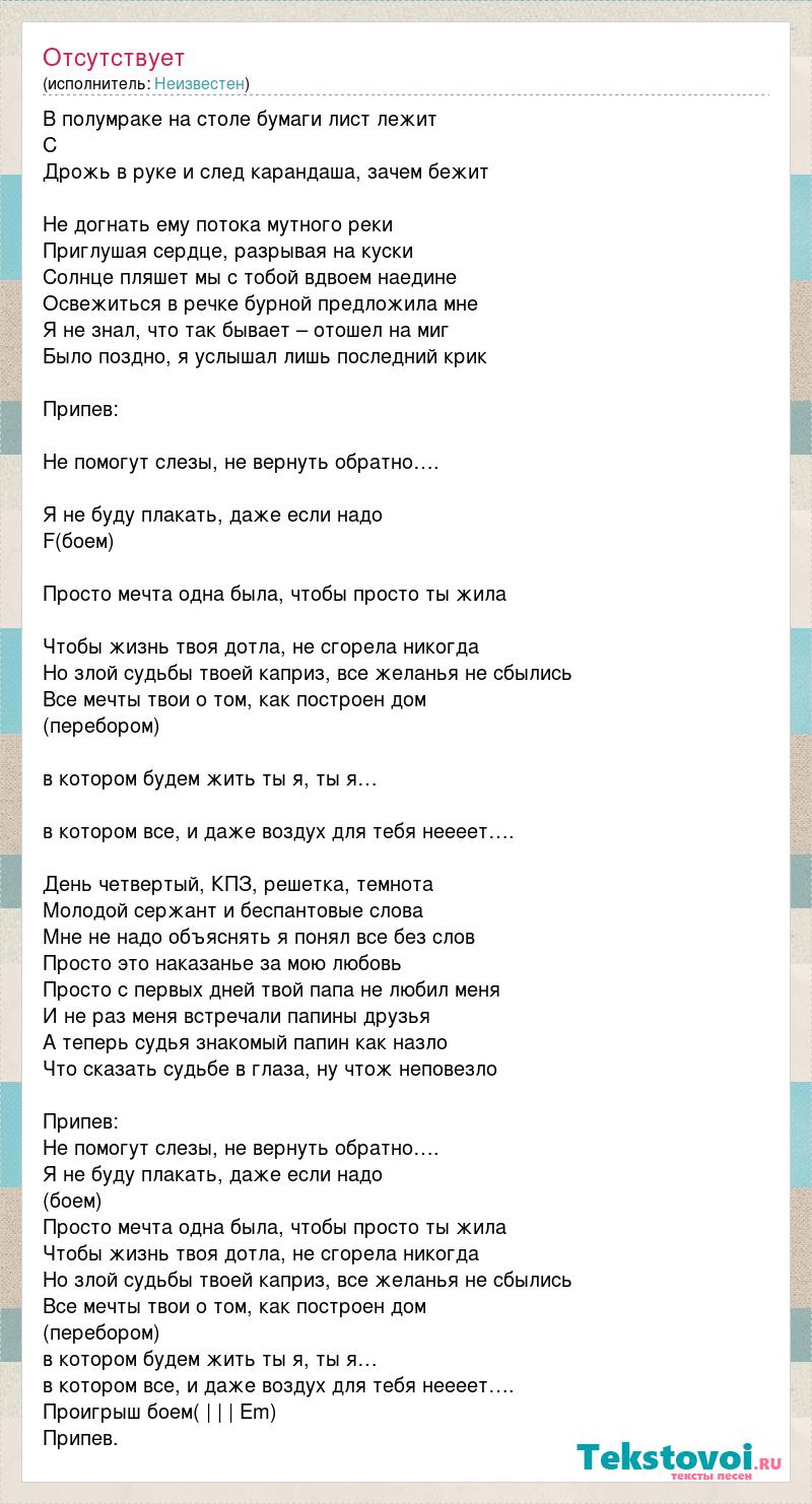 А как ты думаешь, о чем песня "В полумраке на столе бумаги лист лежит" ?