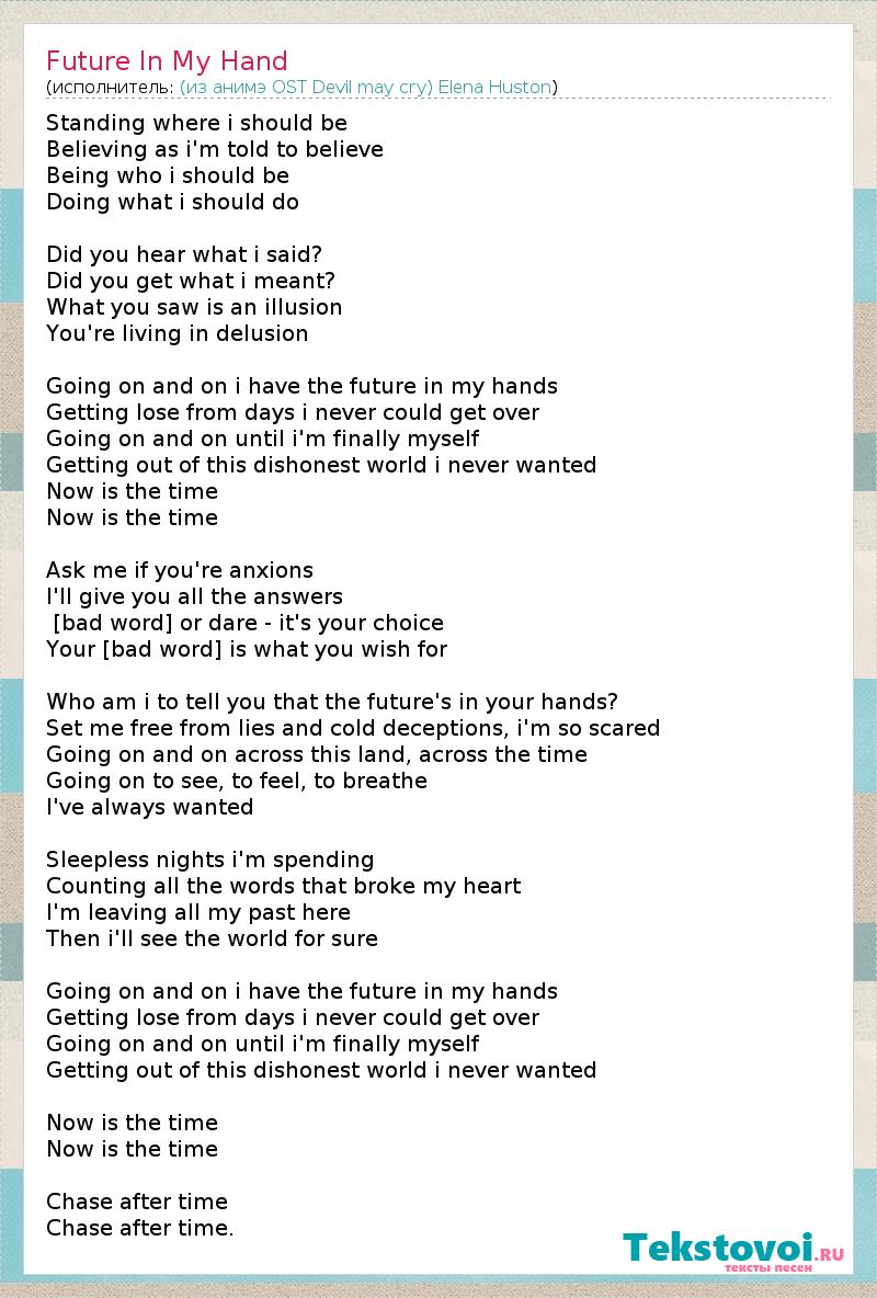 А как ты думаешь, о чем песня "Future In My Hand" ?
