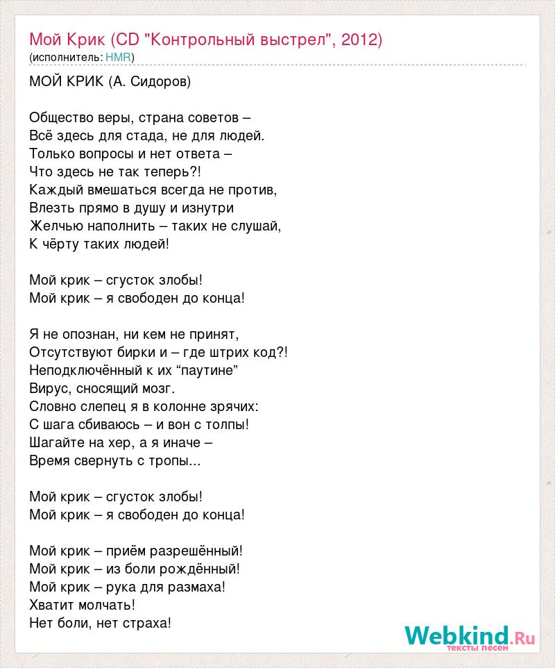 Мой Крик (CD "Контрольный выстрел", 2012)