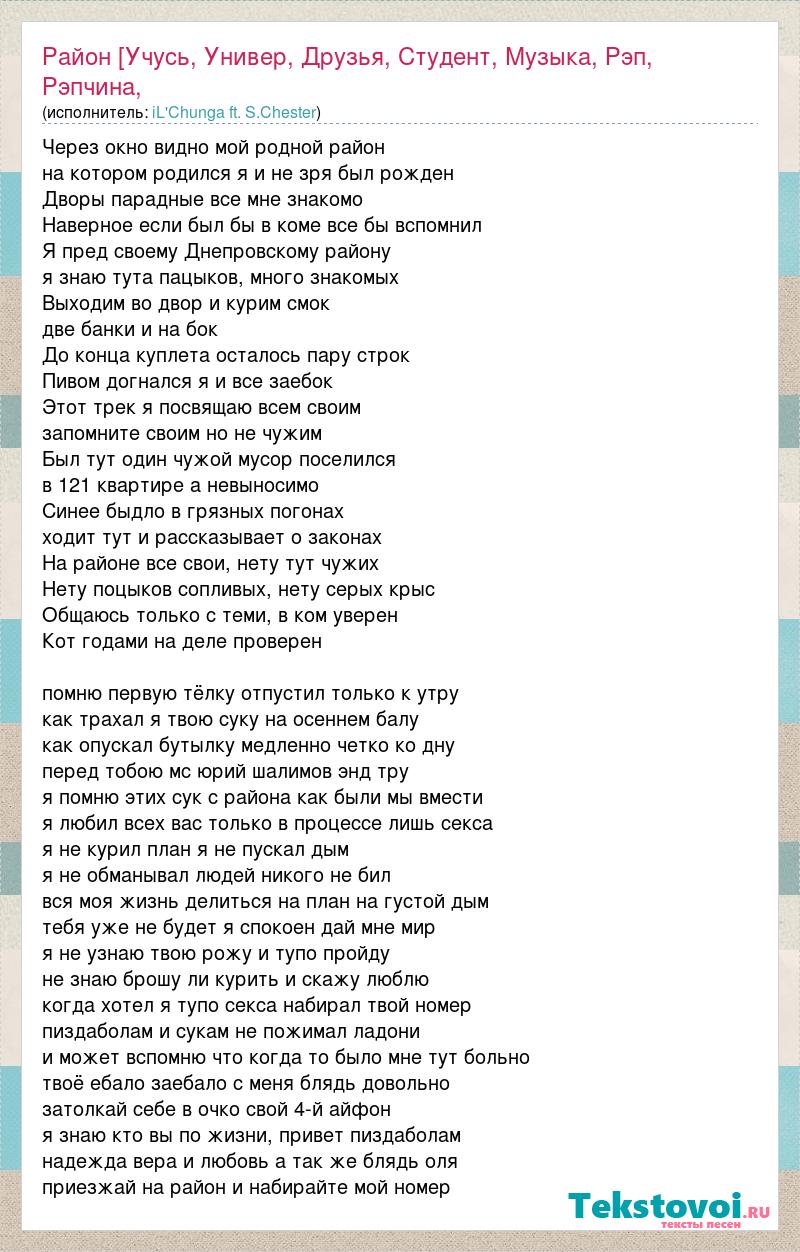 Главная→Исполнители→IL'Chunga ft. S.Chester→Район [Учусь, Универ, Друзья, Студент, Музыка, Рэп, Рэпчина,