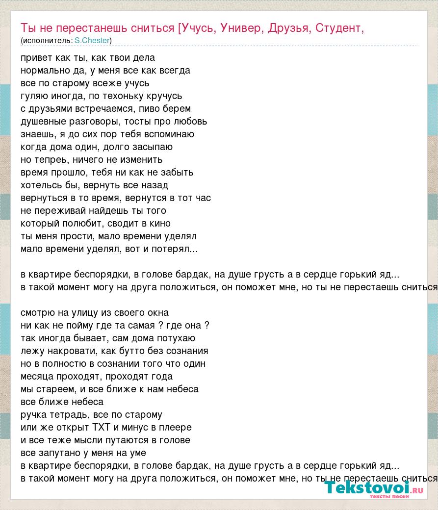 А как ты думаешь, о чем песня "Ты не перестанешь сниться [Учусь, Универ, Друзья, Студент," ?
