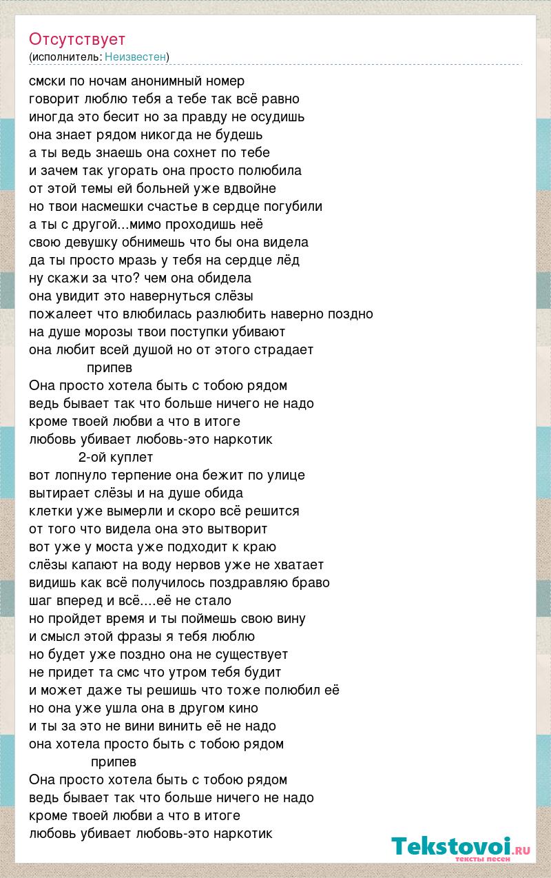 А как ты думаешь, о чем песня "смски по ночам анонимный номер" ?