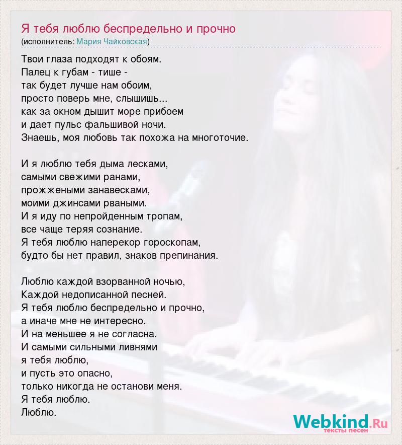 А как ты думаешь, о чем песня "Я тебя люблю беспредельно и прочно" ?