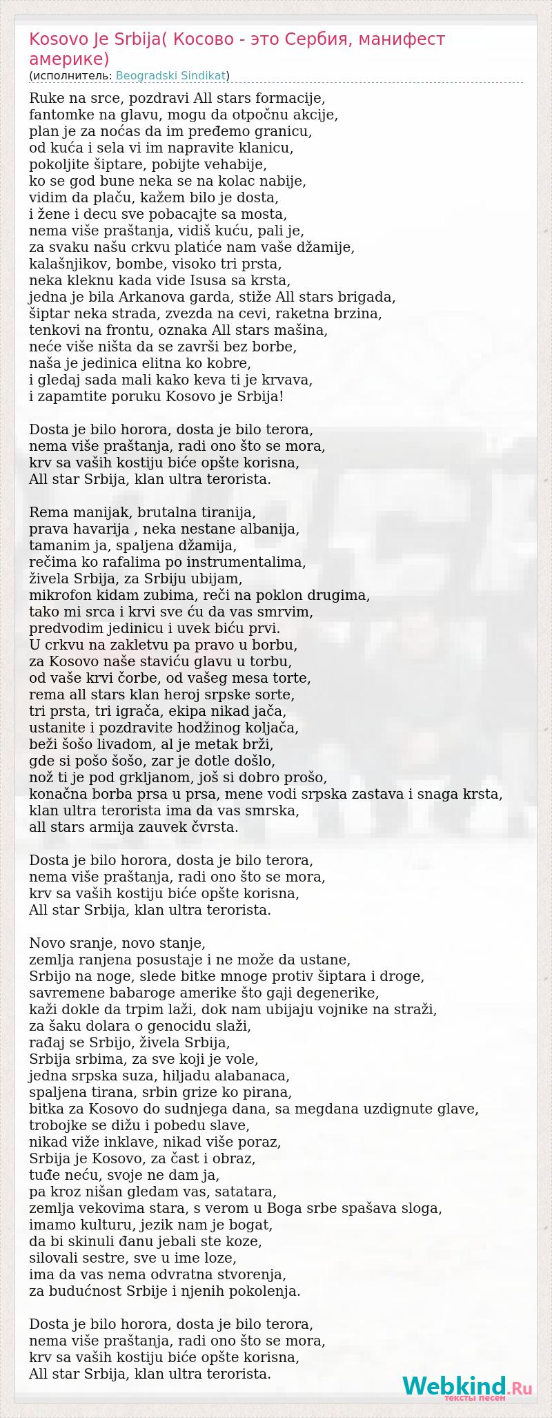А как ты думаешь, о чем песня "Kosovo Je Srbija( Косово - это Сербия, манифест америке)" ?