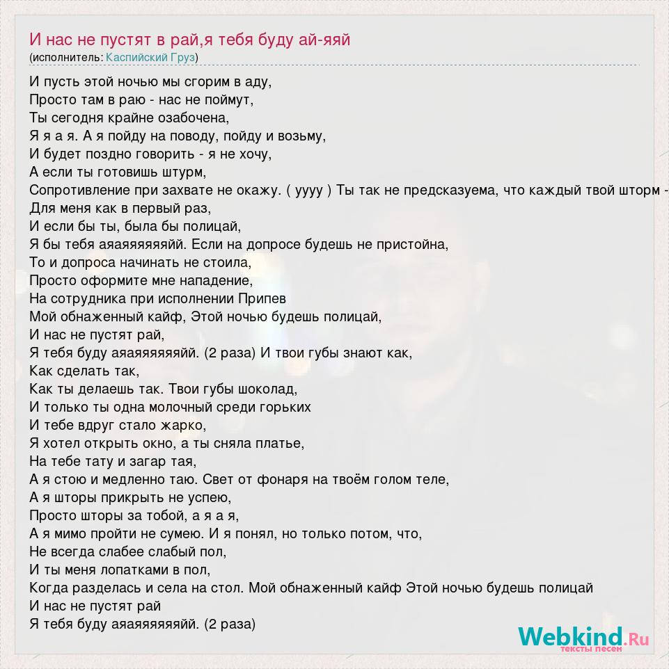 А как ты думаешь, о чем песня "И нас не пустят в рай,я тебя буду ай-яяй" ?