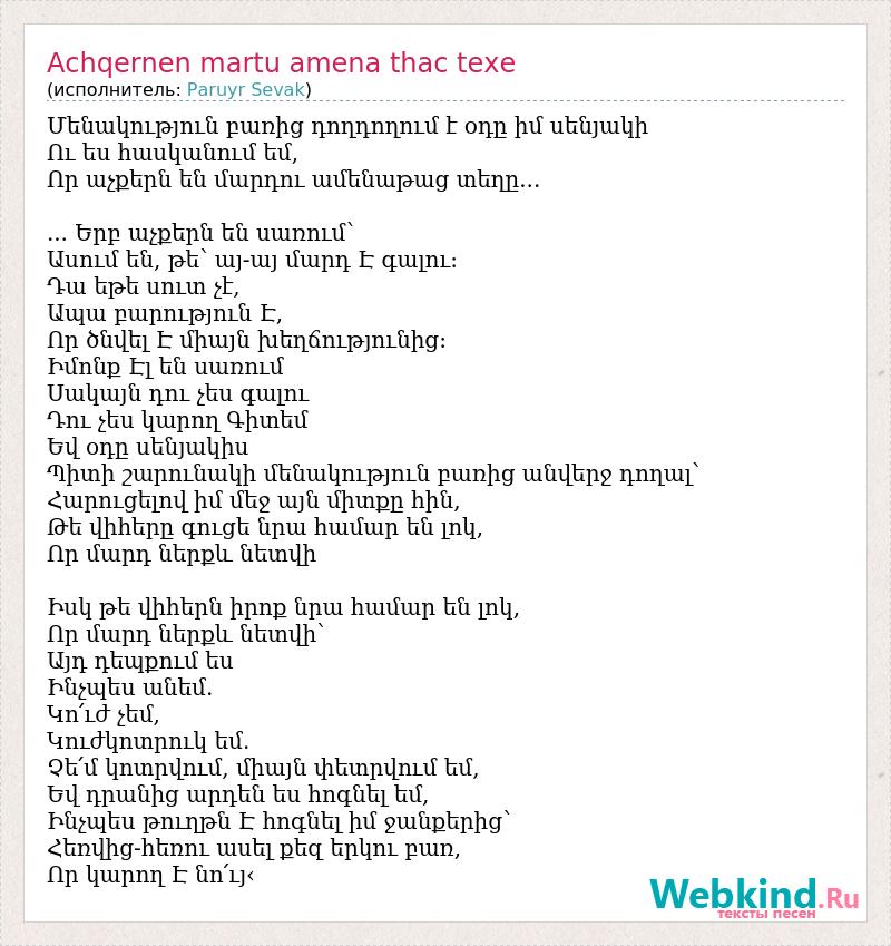 А как ты думаешь, о чем песня "Achqernen martu amena thac texe" ?