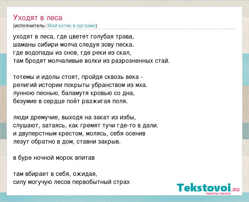 А как ты думаешь, о чем песня "Уходят в леса" ?