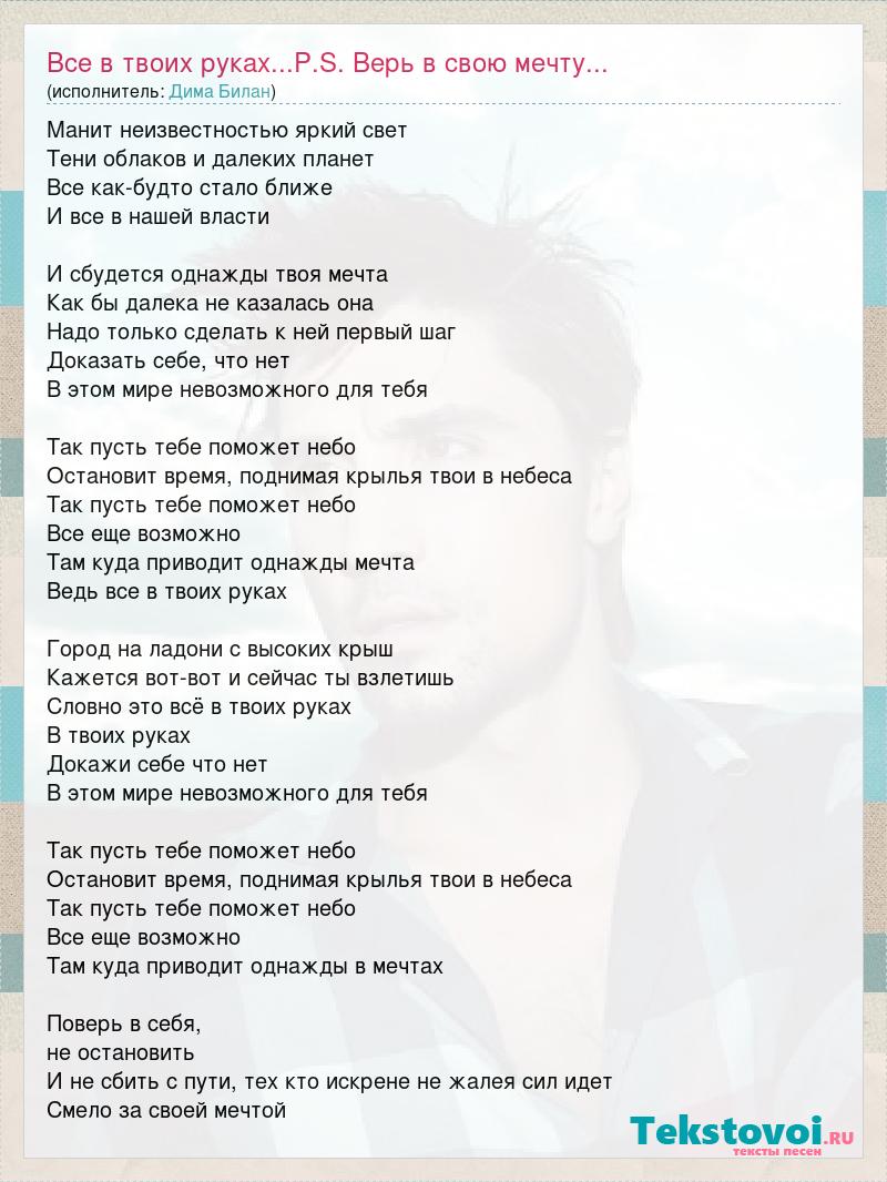 А как ты думаешь, о чем песня "Все в твоих руках...P.S. Верь в свою мечту..." ?