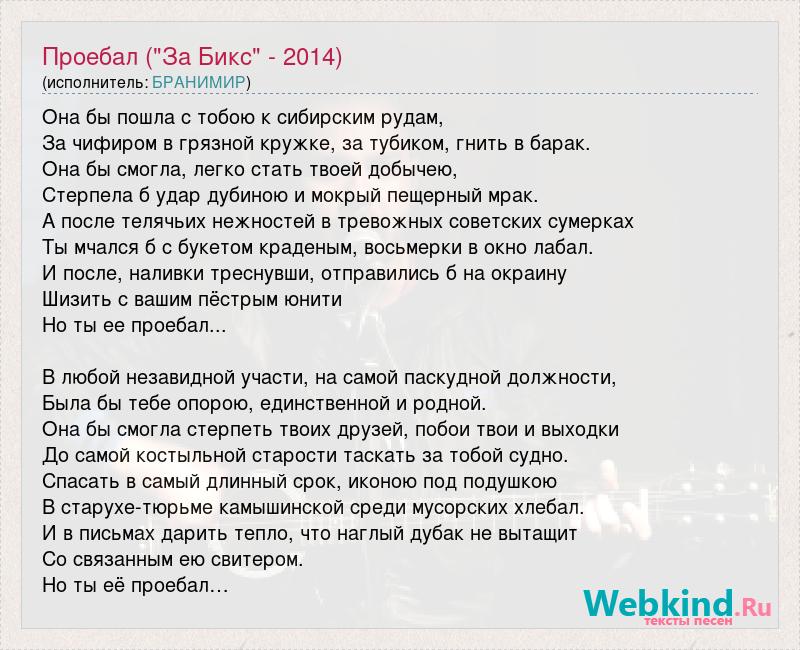 А как ты думаешь, о чем песня "Проебал ("За Бикс" - 2014)" ?