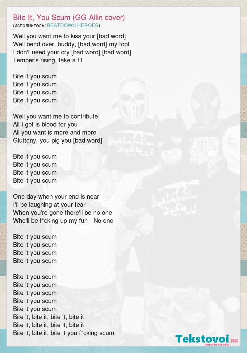 А как ты думаешь, о чем песня "Bite It, You Scum (GG Allin cover)" ?