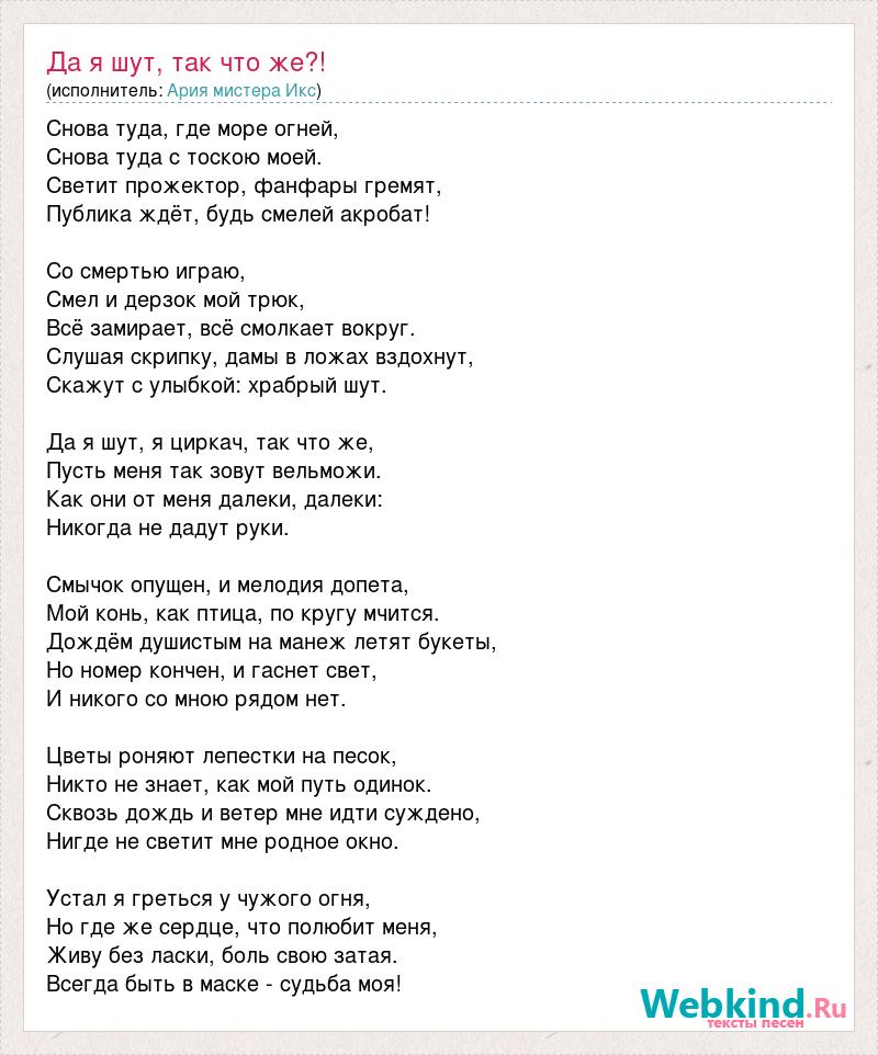 А как ты думаешь, о чем песня "Да я шут, так что же?!" ?