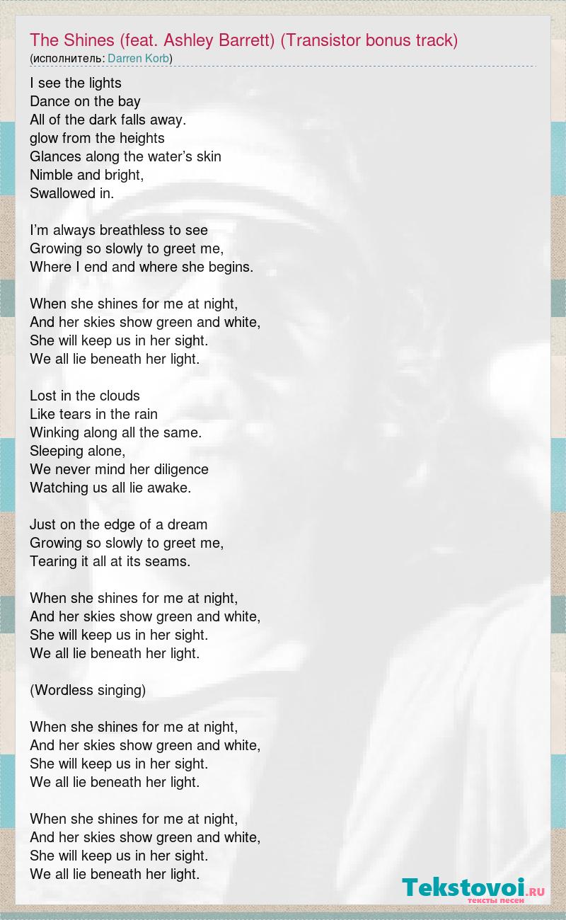 А как ты думаешь, о чем песня "The Shines (feat. Ashley Barrett) (Transistor bonus track)" ?