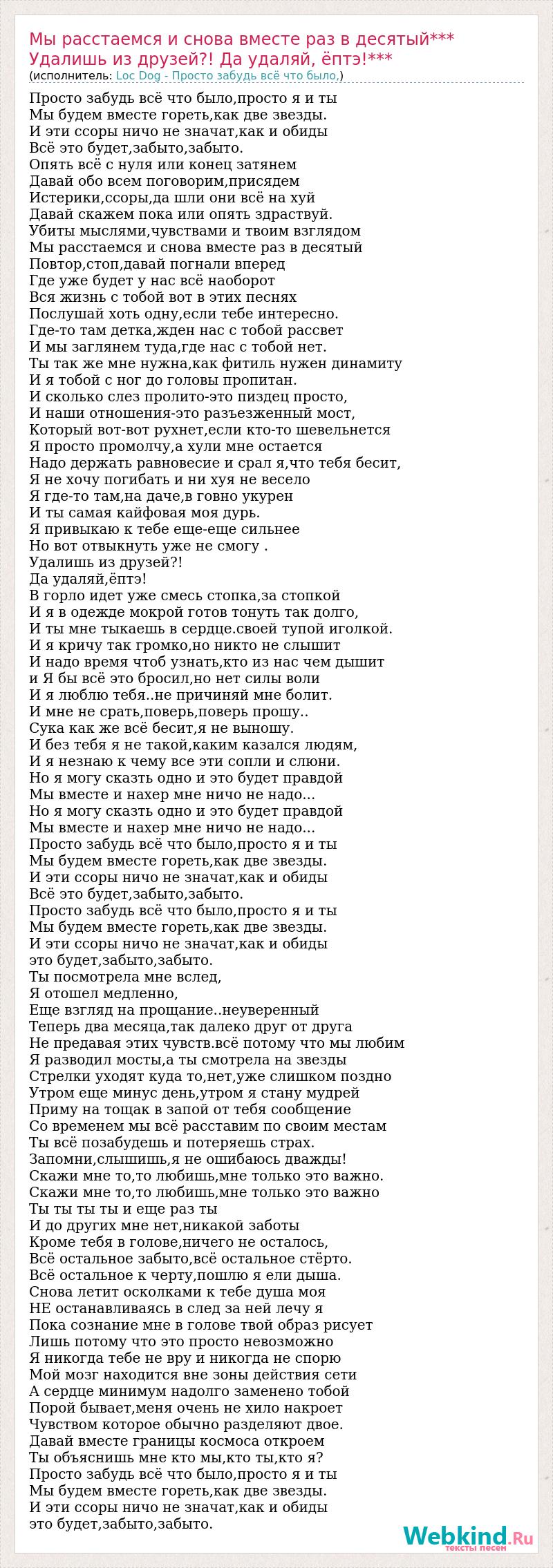 Главная→Исполнители→Loc Dog - Просто забудь всё что было,→Мы расстаемся и снова вместе раз в десятый*** Удалишь из друзей?! Да удаляй, ёпт
