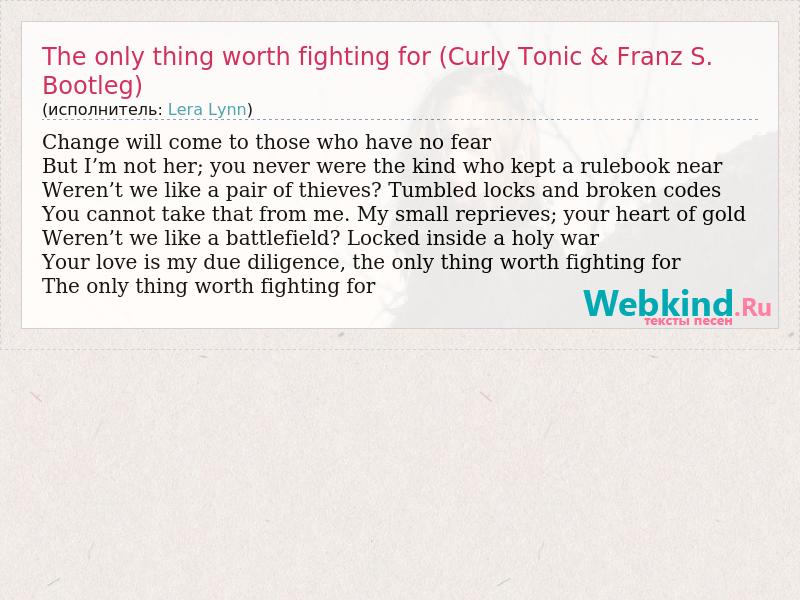 А как ты думаешь, о чем песня "The only thing worth fighting for (Curly Tonic & Franz S. Bootleg)" ?