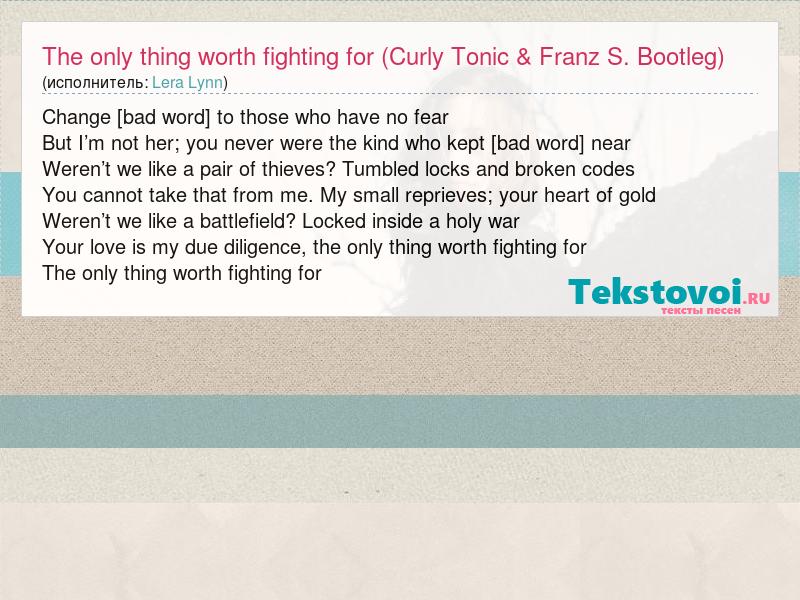 А как ты думаешь, о чем песня "The only thing worth fighting for (Curly Tonic & Franz S. Bootleg)" ?