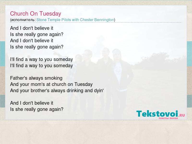 А как ты думаешь, о чем песня "Church On Tuesday" ?