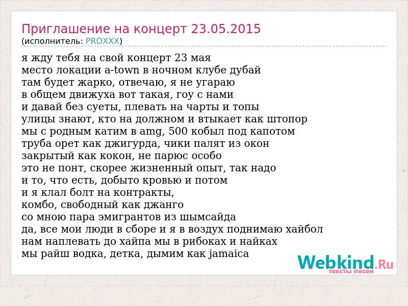А как ты думаешь, о чем песня "Приглашение на концерт 23.05.2015" ?