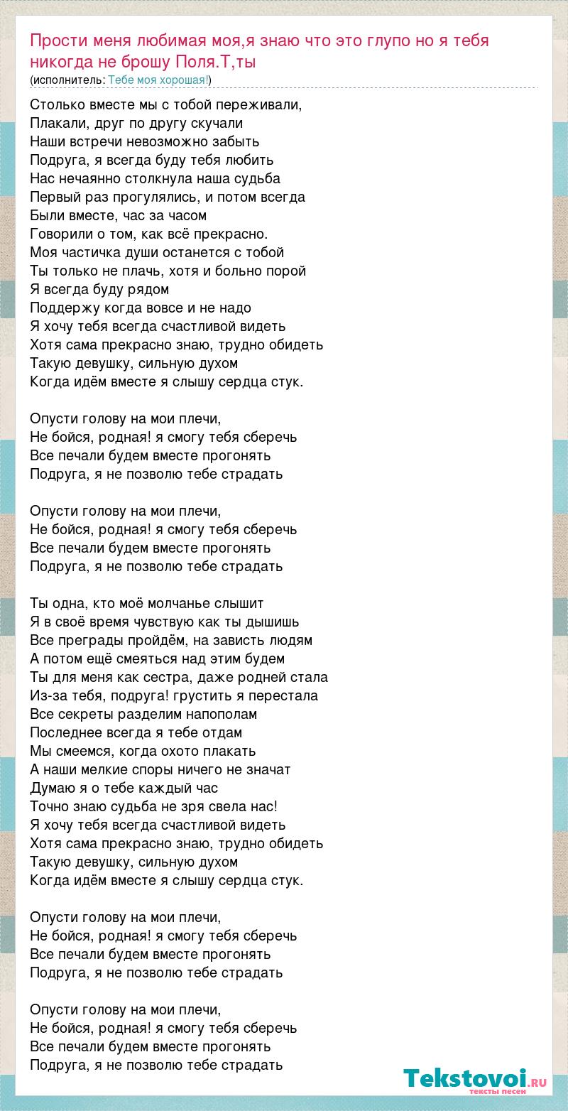 Главная→Исполнители→Тебе моя хорошая!→Прости меня любимая моя,я знаю что это глупо но я тебя никогда не брошу Поля.Т,т
