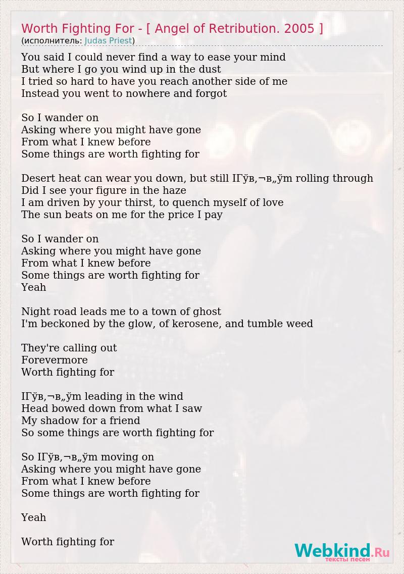 А как ты думаешь, о чем песня "Worth Fighting For - [ Angel of Retribution. 2005 ]" ?