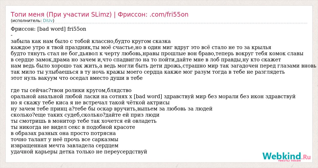 Топи меня (При участии SLimz) | Фриссон: .com/fri55on