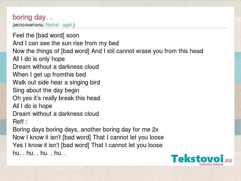 А как ты думаешь, о чем песня "Boring day. ." ?