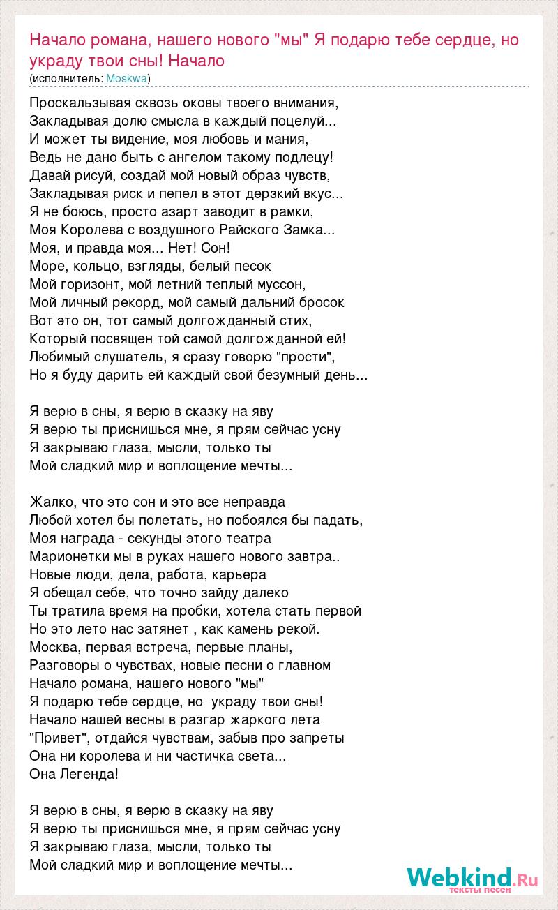 Главная→Исполнители→Moskwa→Начало романа, нашего нового "мы" Я подарю тебе сердце, но украду твои сны!