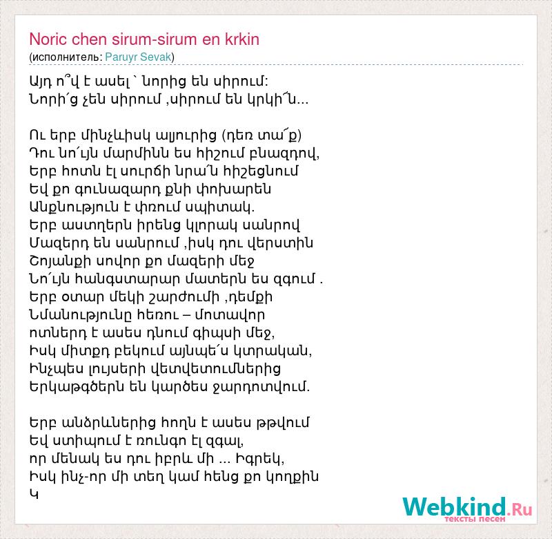 А как ты думаешь, о чем песня "Noric chen sirum-sirum en krkin" ?