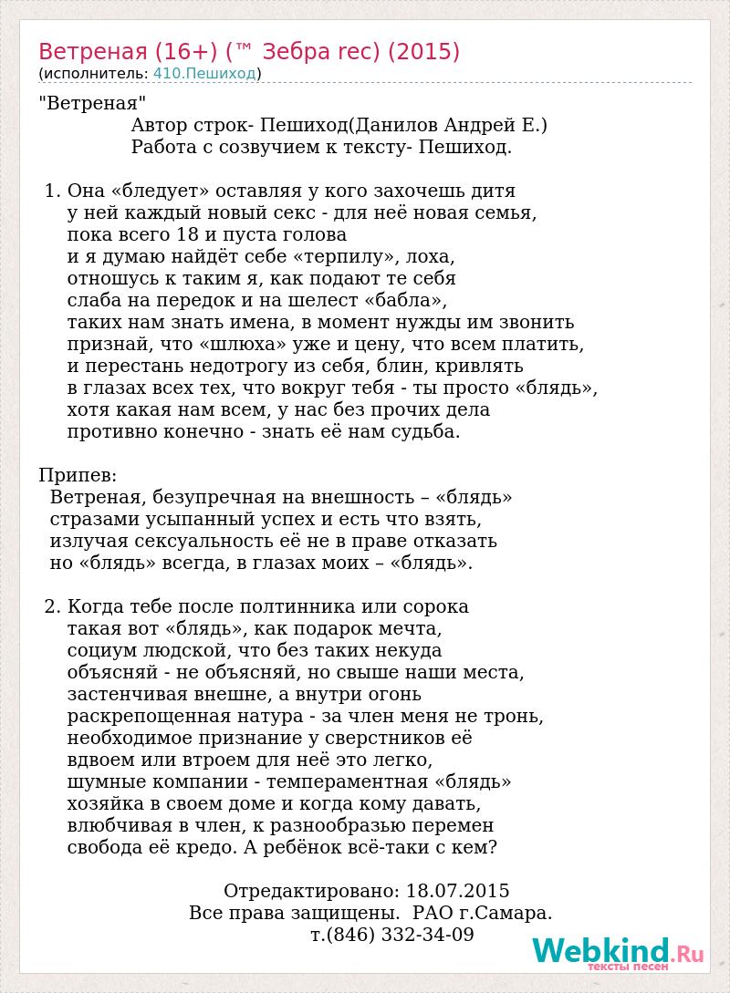 А как ты думаешь, о чем песня "Ветреная (16+) (™ Зебра rec) (2015)" ?