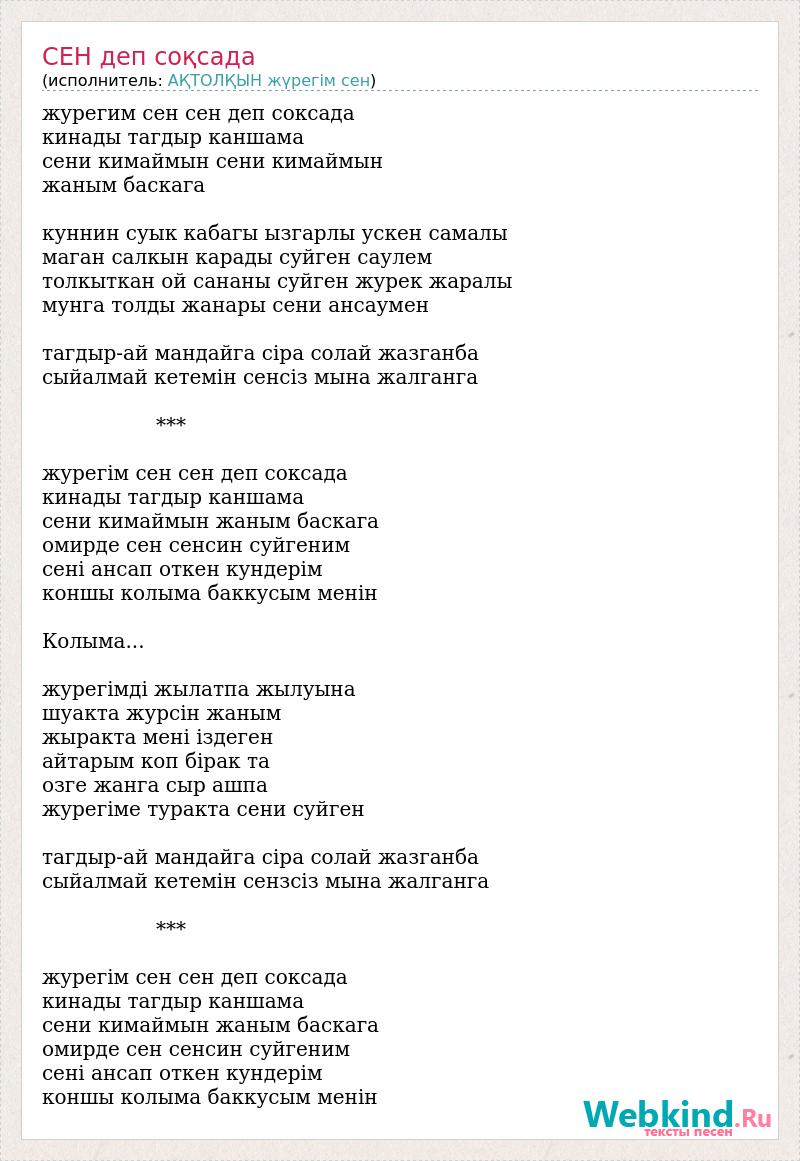 А как ты думаешь, о чем песня "СЕН деп соқсада" ?