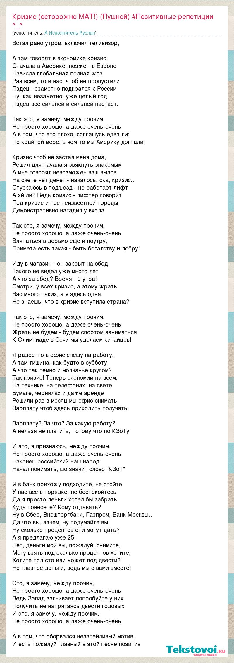 А как ты думаешь, о чем песня "Кризис (осторожно МАТ!) (Пушной) #Позитивные репетиции ^_^" ?