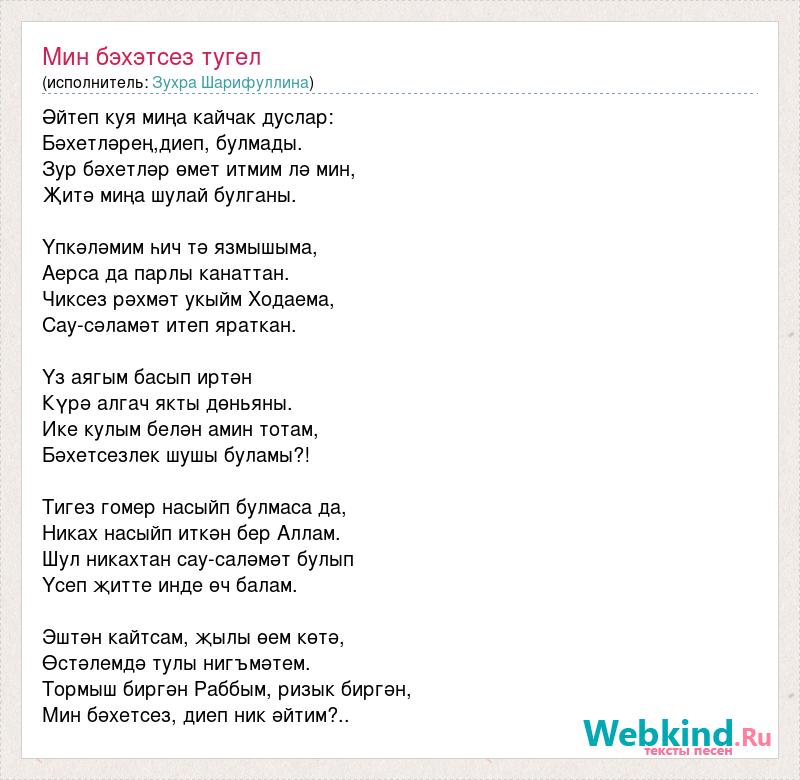 А как ты думаешь, о чем песня "Мин бэхэтсез тугел" ?