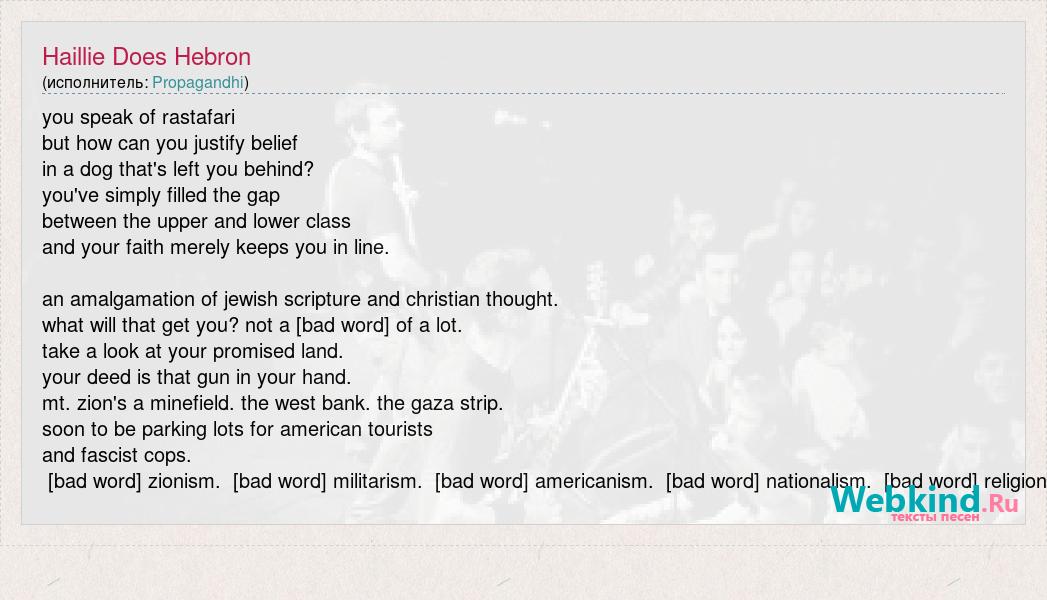 А как ты думаешь, о чем песня "Haillie Does Hebron" ?