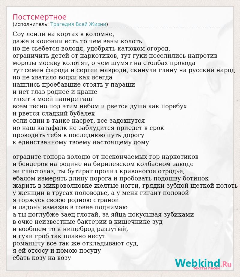 А как ты думаешь, о чем песня "Постсмертное" ?