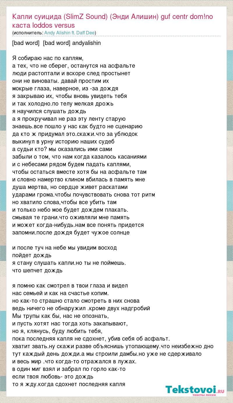 Главная→Исполнители→Andy Alishin ft. Daff Dee→Капли суицида (SlimZ Sound) (Энди Алишин) guf centr dom!no каста loddos v
