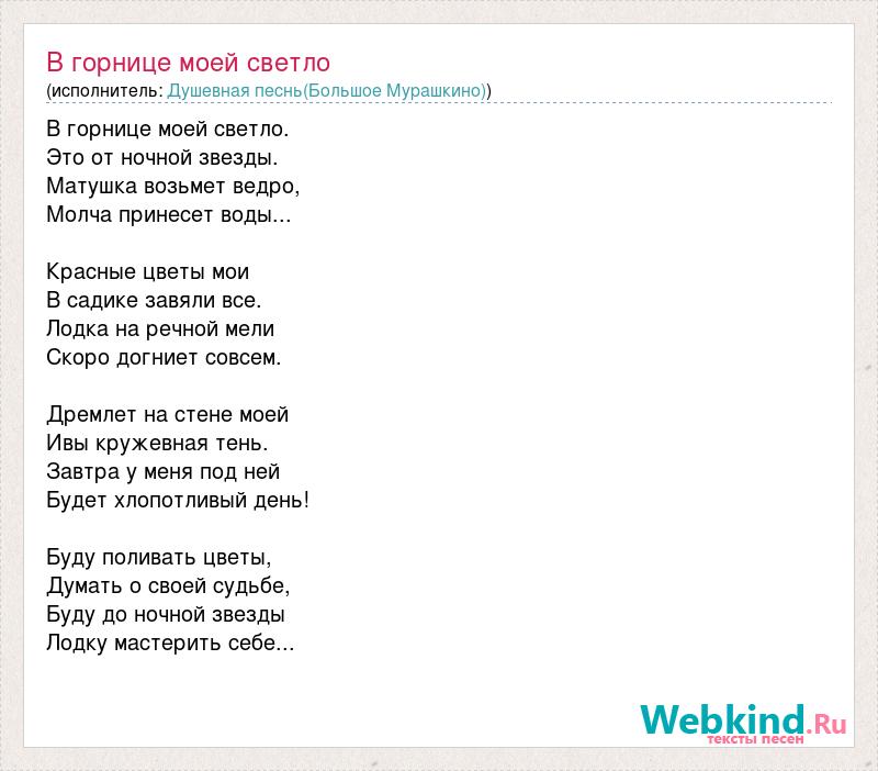 А как ты думаешь, о чем песня "В горнице моей светло" ?