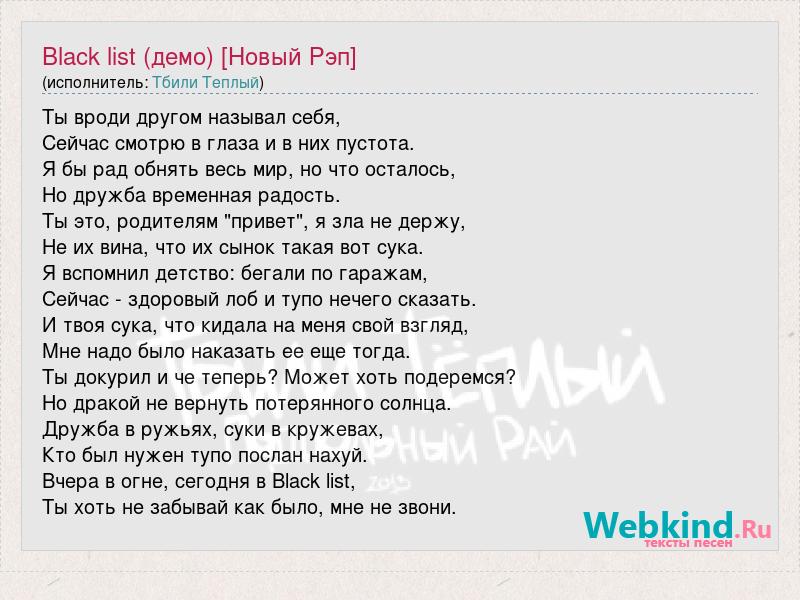 А как ты думаешь, о чем песня "Black list (демо) [Новый Рэп]" ?