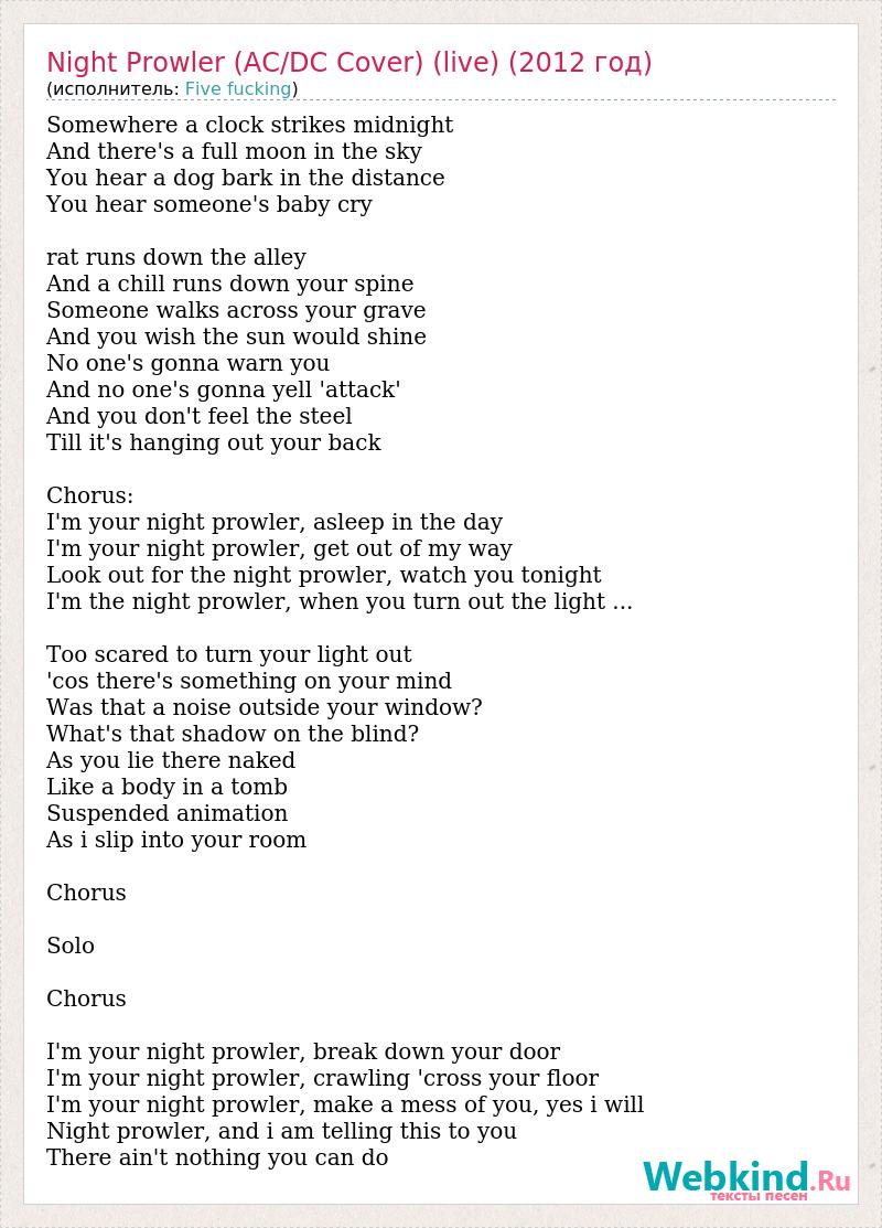 А как ты думаешь, о чем песня "Night Prowler (AC/DC Cover) (live) (2012 год)" ?