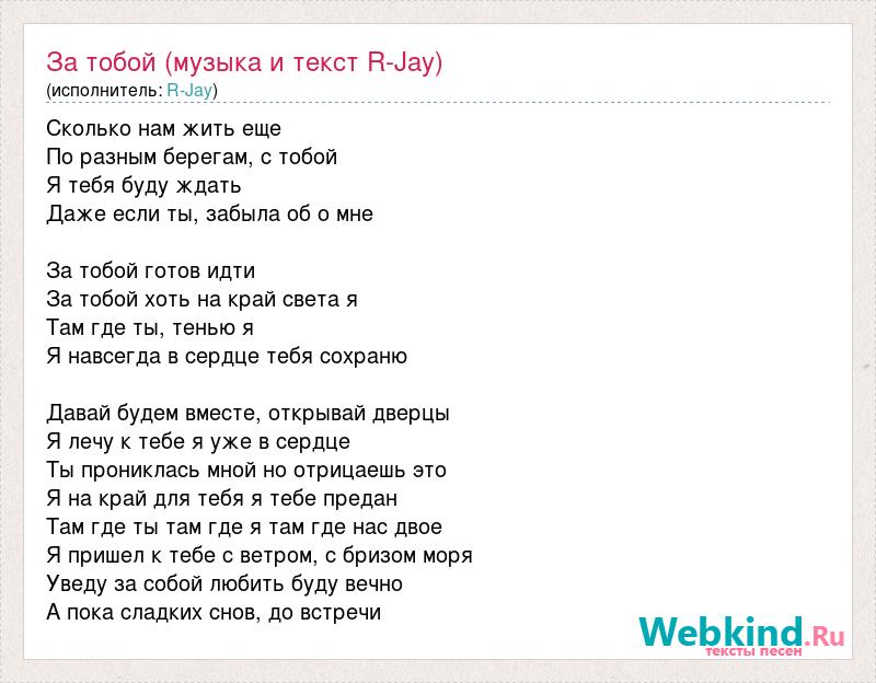 А как ты думаешь, о чем песня "За тобой (музыка и текст R-Jay)" ?
