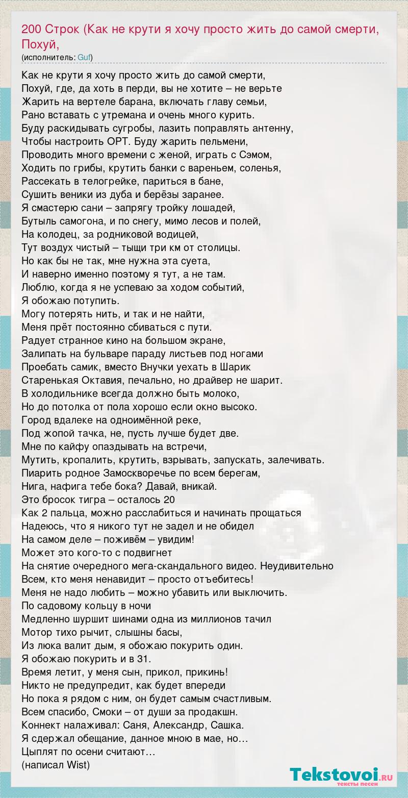 200 Строк (Как не крути я хочу просто жить до самой смерти, Похуй,