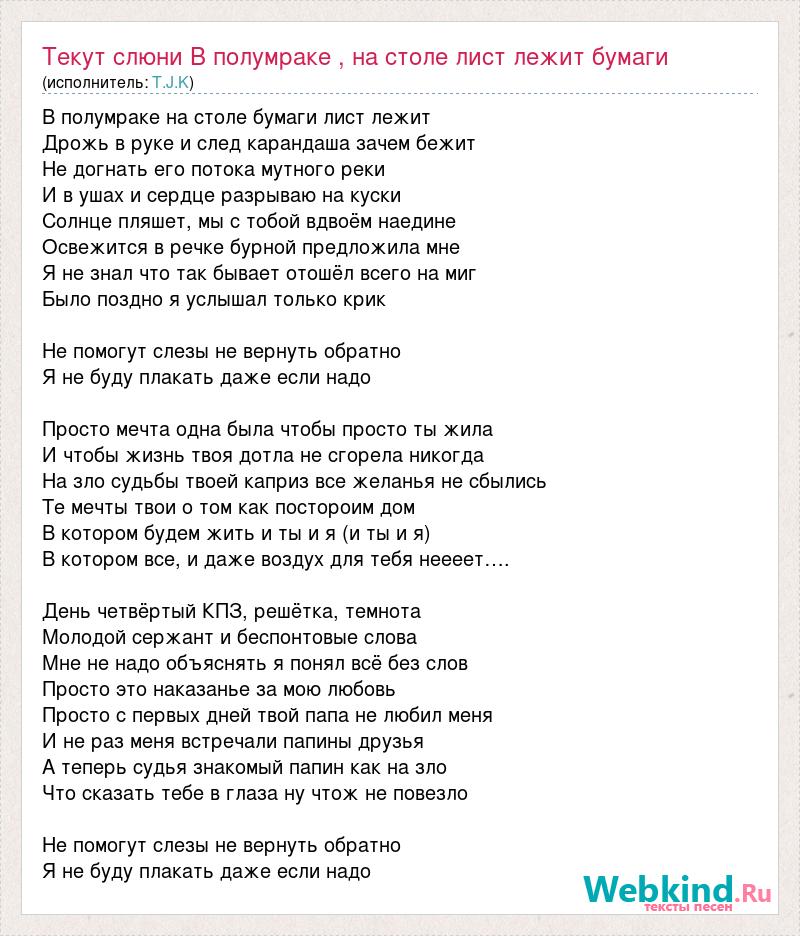А как ты думаешь, о чем песня "Текут слюни В полумраке , на столе лист лежит бумаги" ?