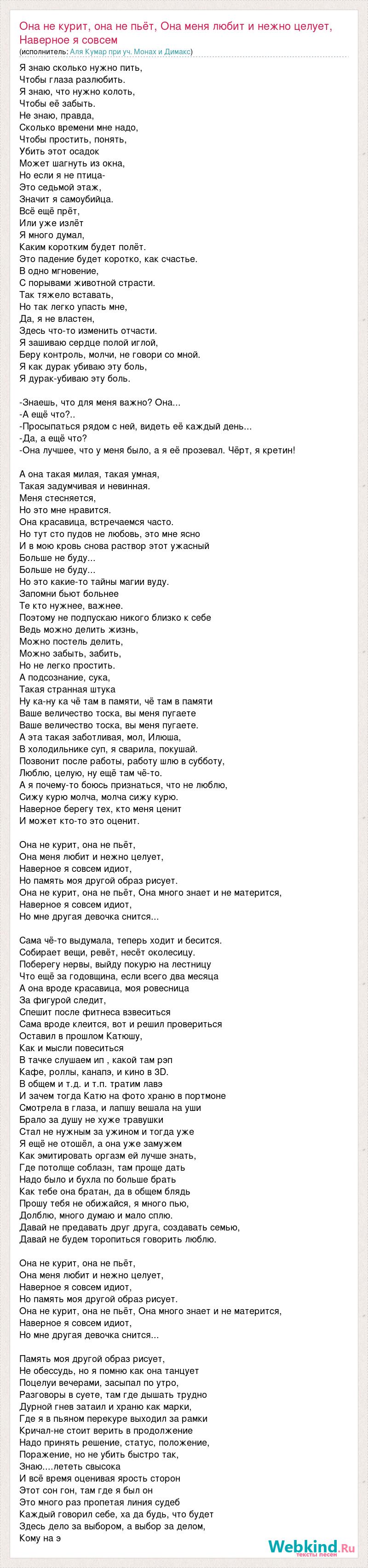 Она не курит, она не пьёт, Она меня любит и нежно целует, Наверное я сов