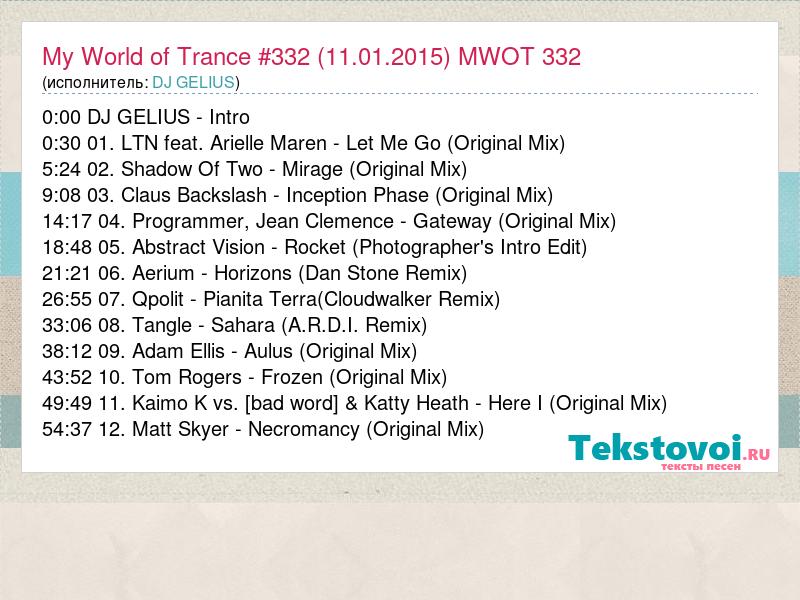 А как ты думаешь, о чем песня "My World of Trance #332 (11.01.2015) MWOT 332" ?