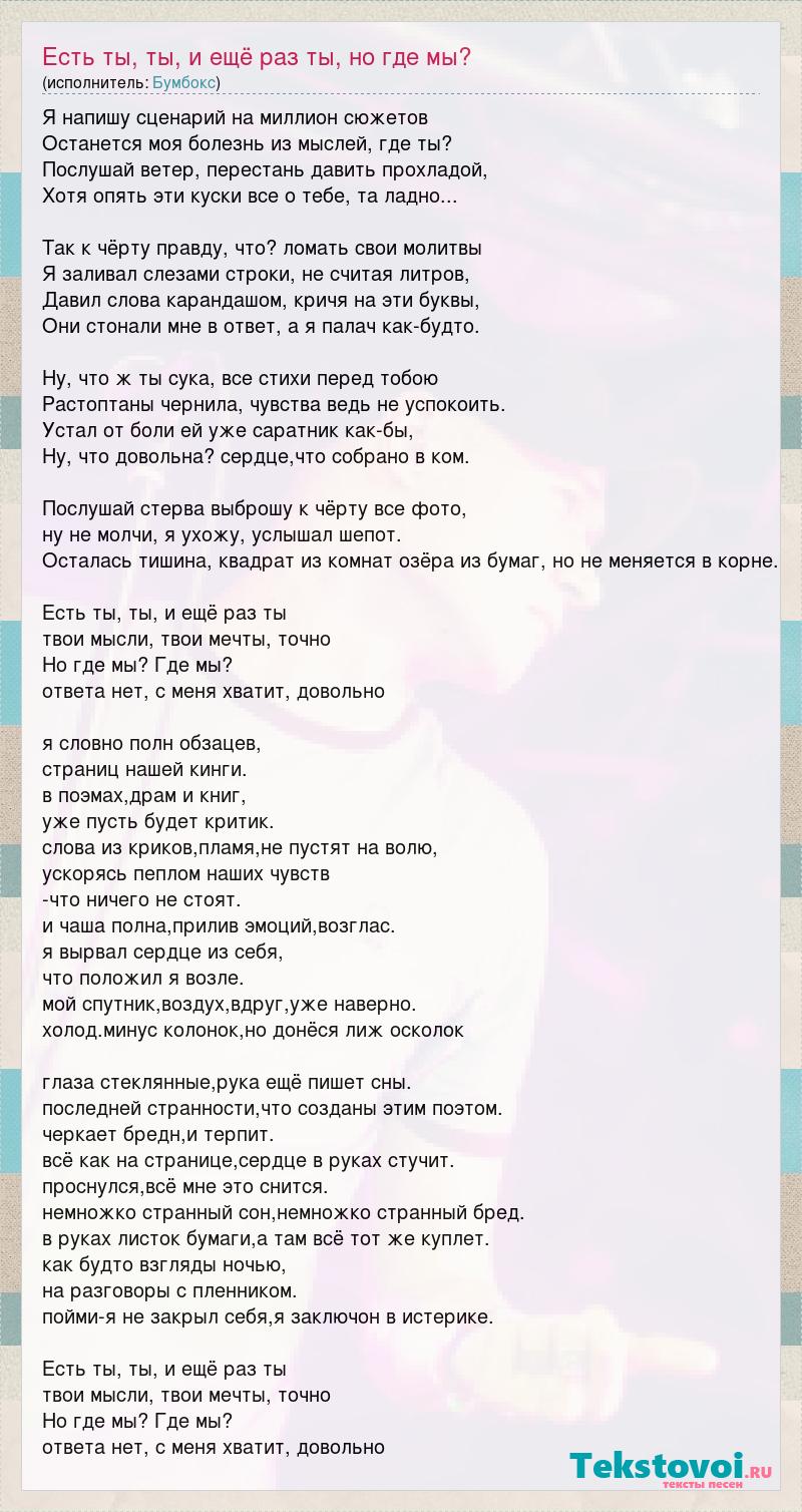 А как ты думаешь, о чем песня "Есть ты, ты, и ещё раз ты, но где мы?" ?