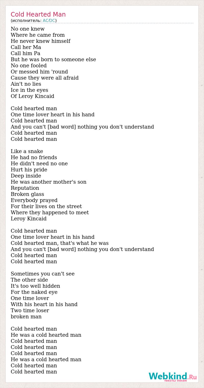 А как ты думаешь, о чем песня "Cold Hearted Man" ?